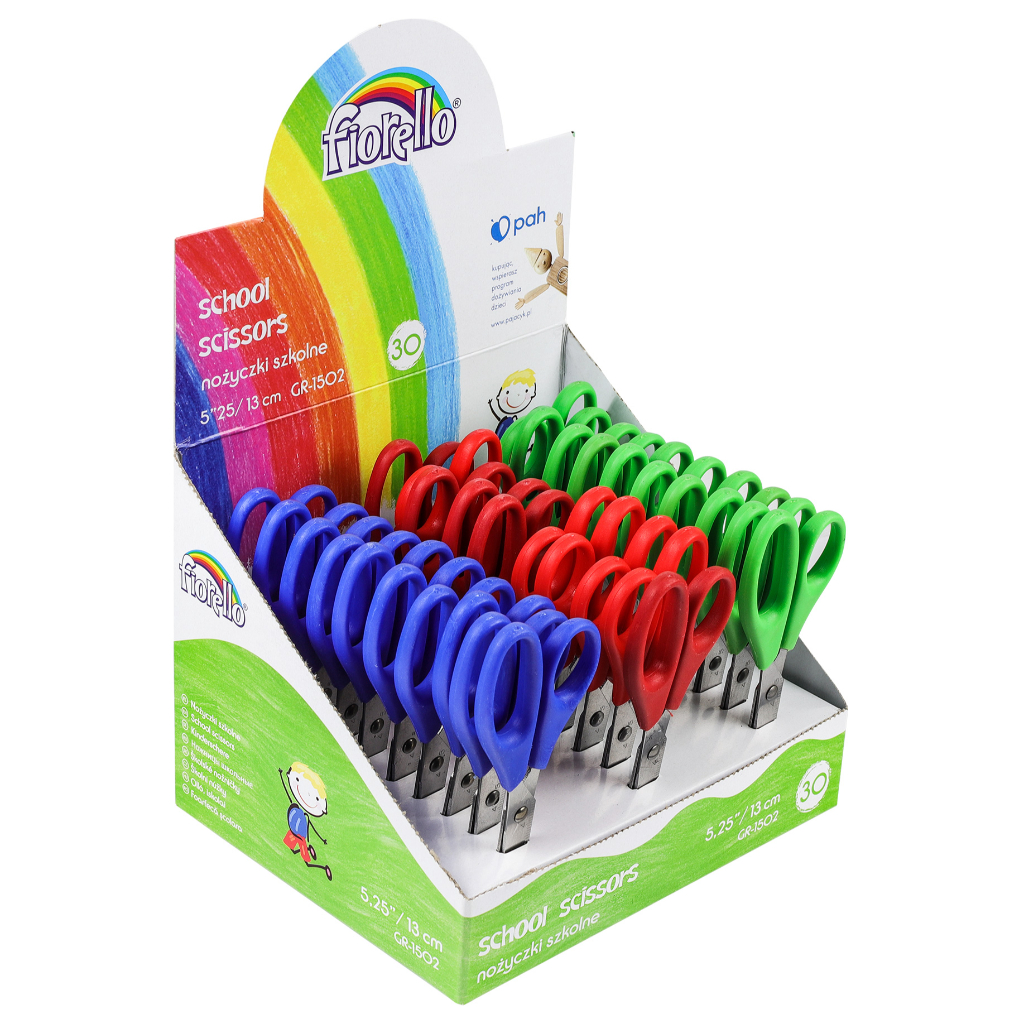 ŠKOLSKE DEČIJE MAKAZE SA LENJIROM su visokokvalitetne makaze dužine 13cm, koje imaju mekanu plastiku, koja je idealna za nežne dečije ruke. Metal im je od nerđajućeg čelika. Na metalu ima i mini lenjir. Idealne za sve uslove, vrtić, školu i dom. U pakovanju je 30 komada u 3 boje – zelena, plava i crvena. Makaze se prodaju na komad, cena je 100,00rsd, samo izaberite boju.
