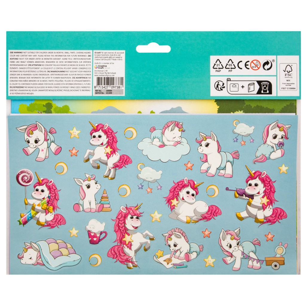 U ovom setu stikera sa jednorozima, devojčice će moći same da lepe svoje jednoroge gde god žele, na 3 već ,,osmišljene scene” iz čudnovatog sveta jednoroga i mašte! Za svaku ,,scenu” predodređeno je po 30 stikera. Prepustite svom detetu mašti na volju i obezbedite mu ovaj kreativni set sa mnoštvo stikera!
